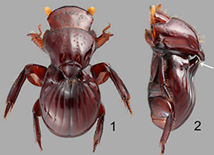 Cette espèce de coléoptère récemment découverte, originaire du Cambodge, vie à l’intérieur des nids de termite de l’espèce Macrotermes gilvus. Un appendice sert de "poignée" (au sens propre ; flèche sur l'image 2) que les termites agrippent pour les transporter. Lire la suite
